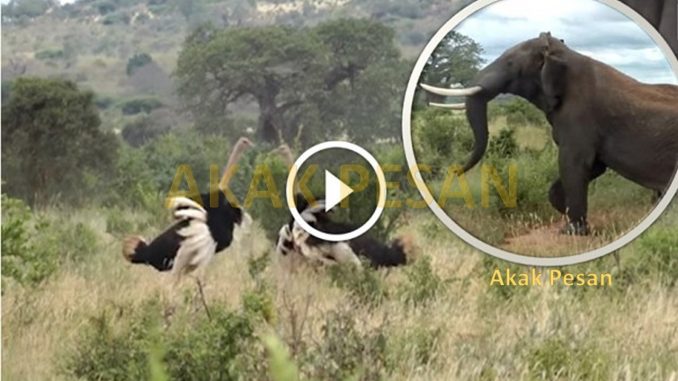 Seekor gajah besar yang secara tidak sengaja melalui satu kawasan di taman negara tanzania telah dikejutkan dengan adegan perga duhan antara dua ekor burung unta. Gajah itu mula menarik perhatian perakam apabila gajah itu mula melakukan sesuatu.