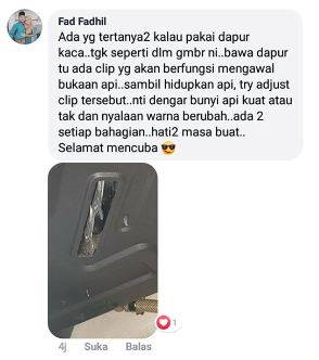 “Haaa ini caranya untuk kembalikan api jadi warna biru. Selamat tinggal jelaga yang suka singgah di periuk. Lani hangpa baca setiap caption kat gambaq nah. Ni dapoq g4s yang biasa tu nah.”