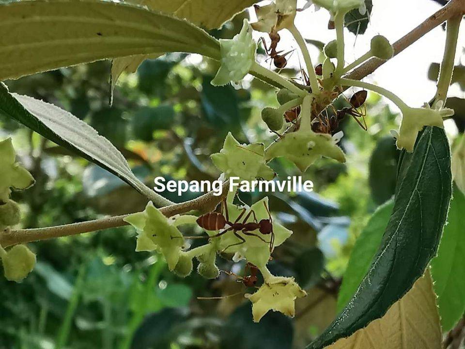 Saya ambil satu sarang kerengga dan letakkan pada pokok tersebut. Alhamdulilah berhasil dan sekarang banyak putik buah yang ada.