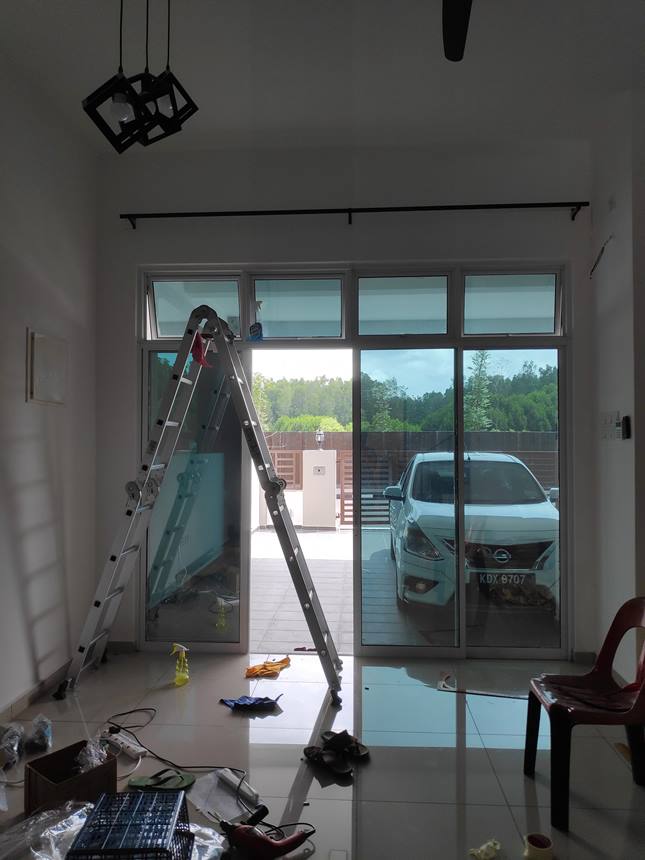 Keadaan cuaca negara kita yang selalu panas elok kiranya kalau pasang tinted pada cermin rumah terutama sliding door. Bukan saja untuk elak panas dan silau saja tapi yang lebih penting untuk jaga privacy dan aurat penghuni rumah. Takdelah bila selak langsir nampak dari luar suasana dalam rumah.