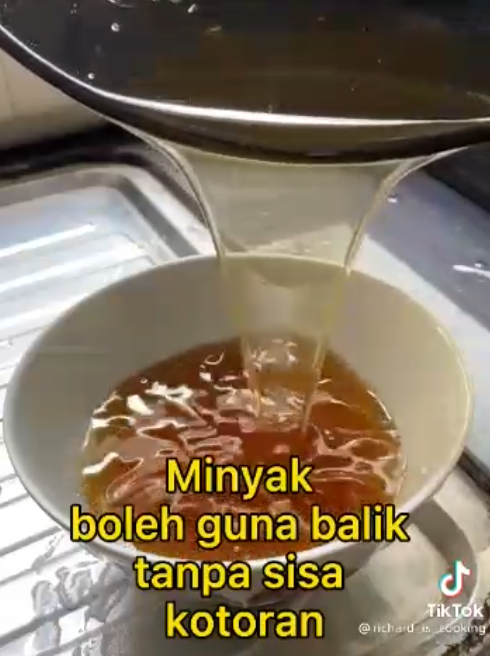 Mungkin ada yang tidak tahu cara menyimpan minyak masak yang telah digunakan. Melalui video yang dikongsikan oleh Richard di laman tktknya, beliau telah berkongsikan tips menyimpan minyak masak yang digunakan sekali tanpa sisa kotoran.