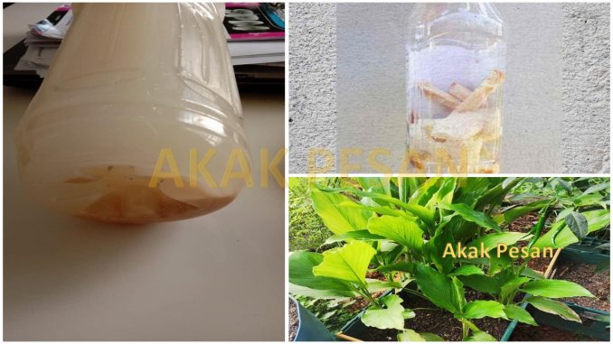Saya nak tunjukkan apa yang saya gunakan untuk pokok kunyit, pokok serai dan pokok pandan supaya gemuk sihat dan tahan daripada penyakit.