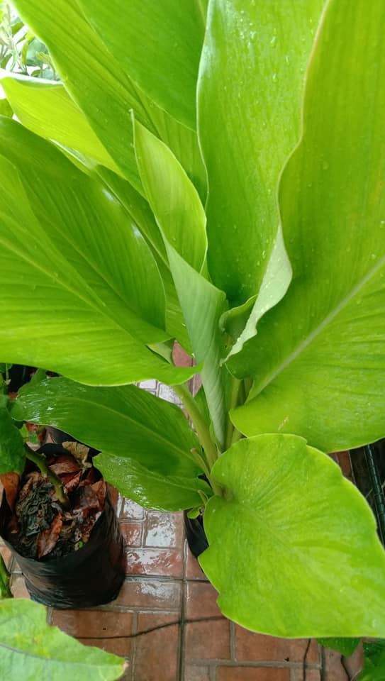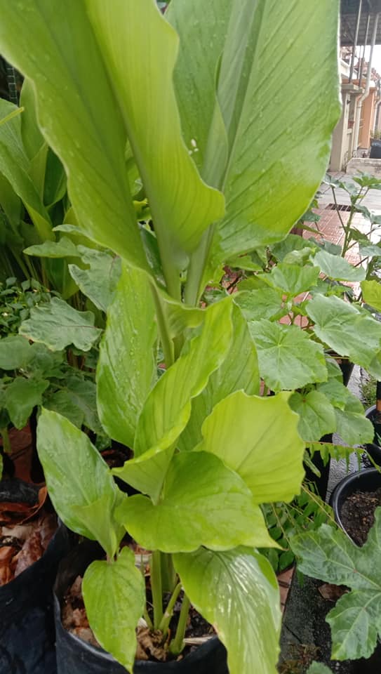 Pokok kunyit berusia tiga bulan. Full cahaya. Saya hanya guna mol roti dan tinja kambing.