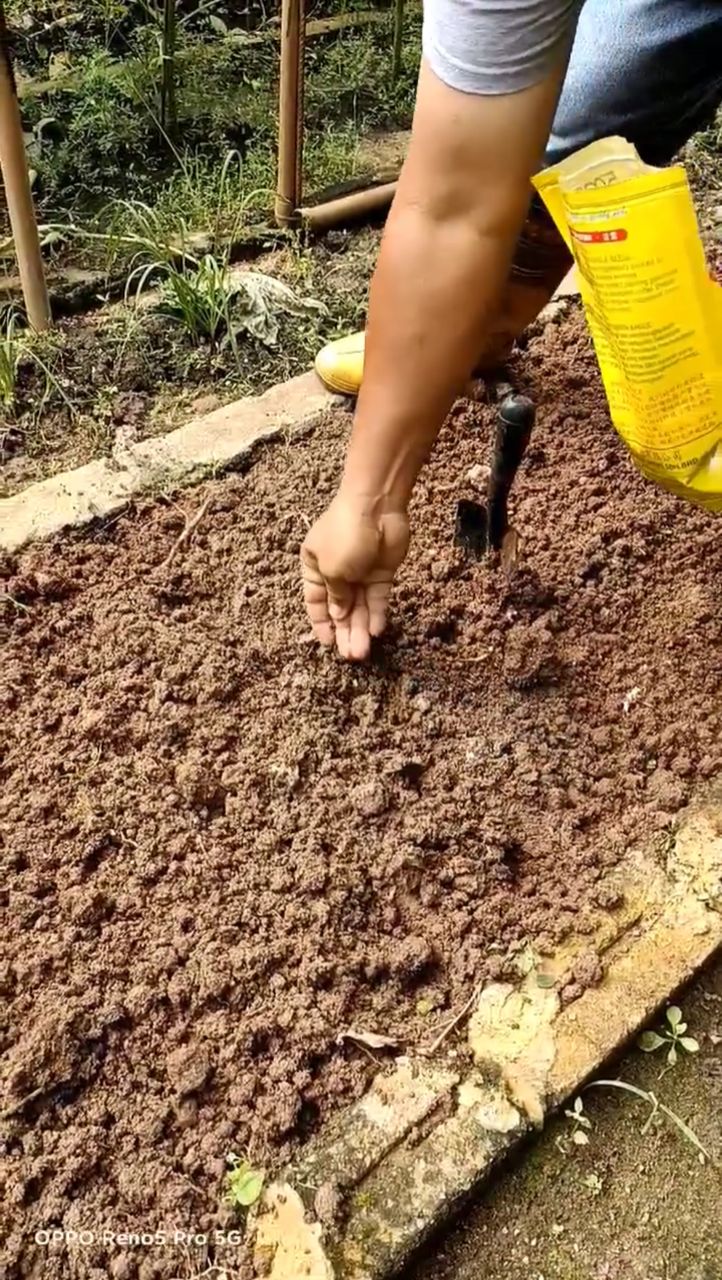 Mula-mula korek longkang kecil dan tabur benih kangkung.