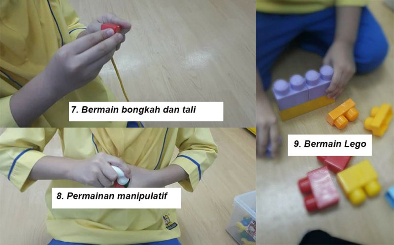 Ini hanya sebahagian aktiviti. Banyak lagi aktiviti kuatkan tangan dan bahu yang boleh meningkatkan skil menulis anak. Ggle banyak lagi aktiviti lain.