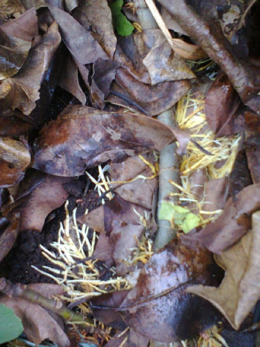 Akar yang agr3sif di bawah timbunan daun ketapang