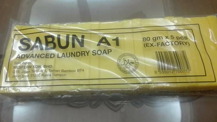 - sabun cap kapak/buruh (ada di Mydin) atau